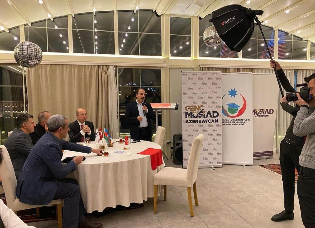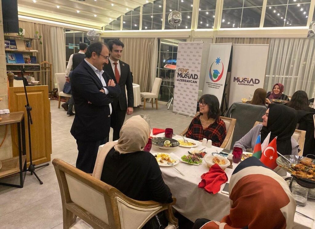Azerbaycan Genç MÜSİAD tarafından organize edilen programda, Büyükelçimiz Doç. Dr. Cahit Bağcı’nın katılımıyla, Mimarlık ve İnşaat, Azerbaycan Tıp, Bakü Devlet, Neft ve Sanayi, Devlet Pedagoji, Devlet İktisat ve Odlar Yurdu Üniversitelerinde eğitim gören öğrenci arkadaşlarımızla buluştuk. Katılım sağlayan herkese teşekkür ederiz.